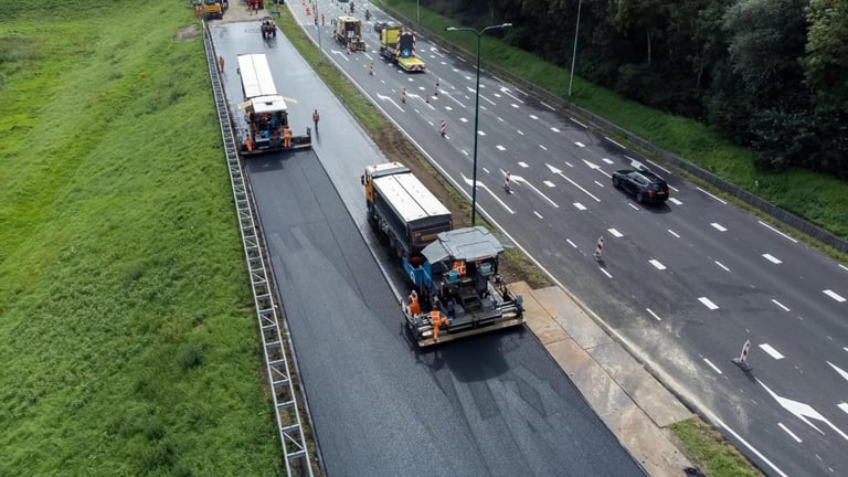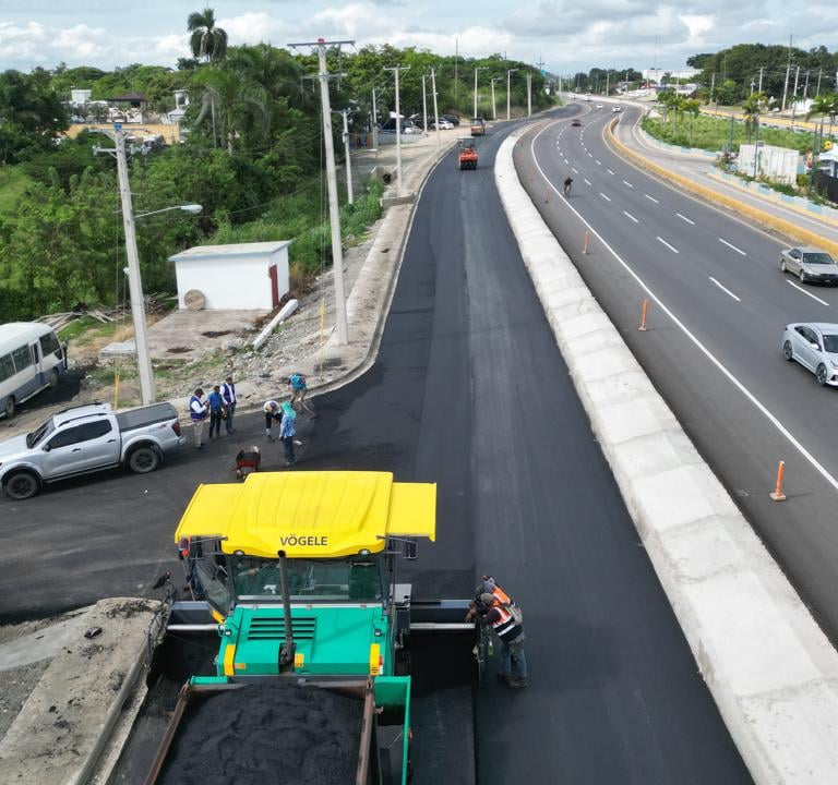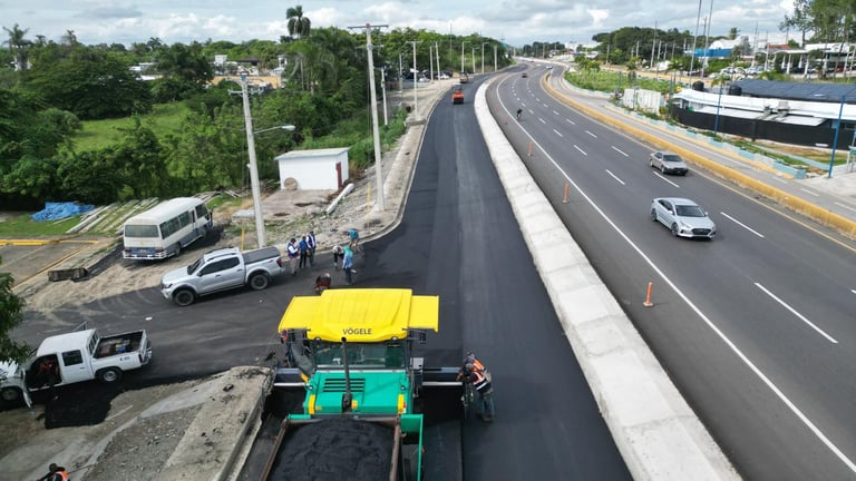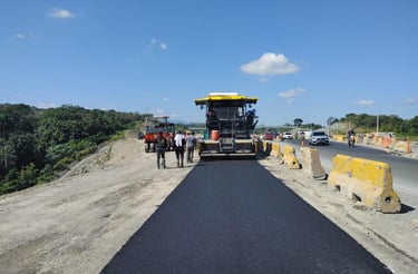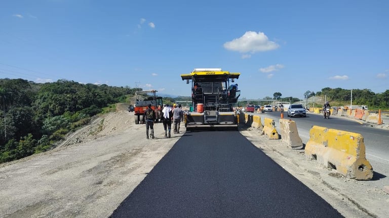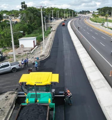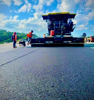 Asfalto caliente, colocación de asfalto y señalizacion de la via.